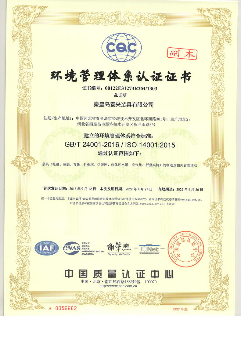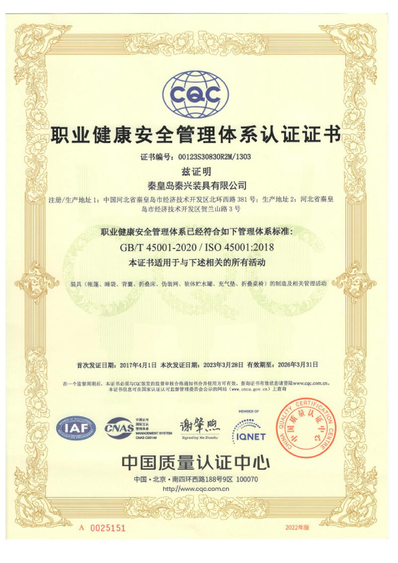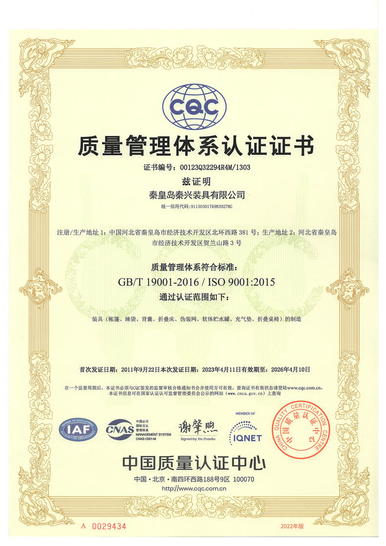 秦皇島秦興裝具有限公司有限公司源于我國(guó)第3524工廠(chǎng),創(chuàng)建于2005年,占地面積30畝,是一家致力于研究,發(fā)展,制造和銷(xiāo)售為一體的綜合性裝具及紡織服裝加工生產(chǎn)企業(yè),我們的主要產(chǎn)品有單、棉帳篷,民用帳篷,旅游帳篷集各種機(jī)工產(chǎn)品等。